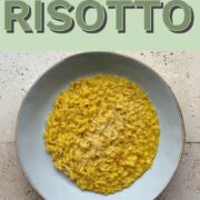 Saffron: Saffron is found in specialty food stores, but also most supermarkets stock it these days. It usually comes in a 1 gram container, so for this recipe, use around half a container. Bloom the saffron threads in hot water before you begin cooking the risotto.